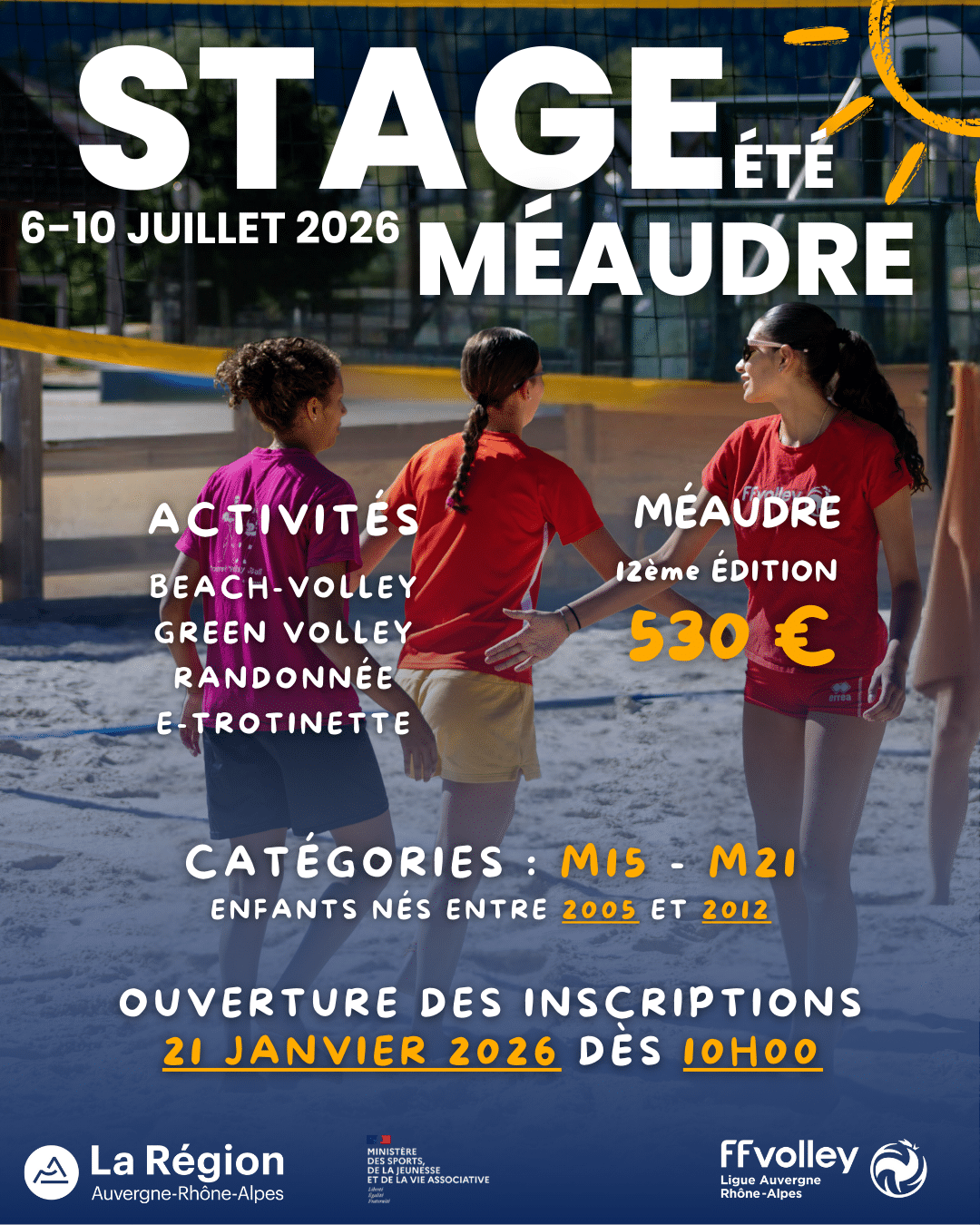 Stages Volley Été 2026 : Les 4 stages proposés par la Ligue Auvergne-Rhône-Alpes de Volley !